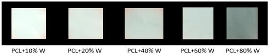 Micro-fibrous PCL sheets characterized by different W content (w% with respect to the PCL polymer).