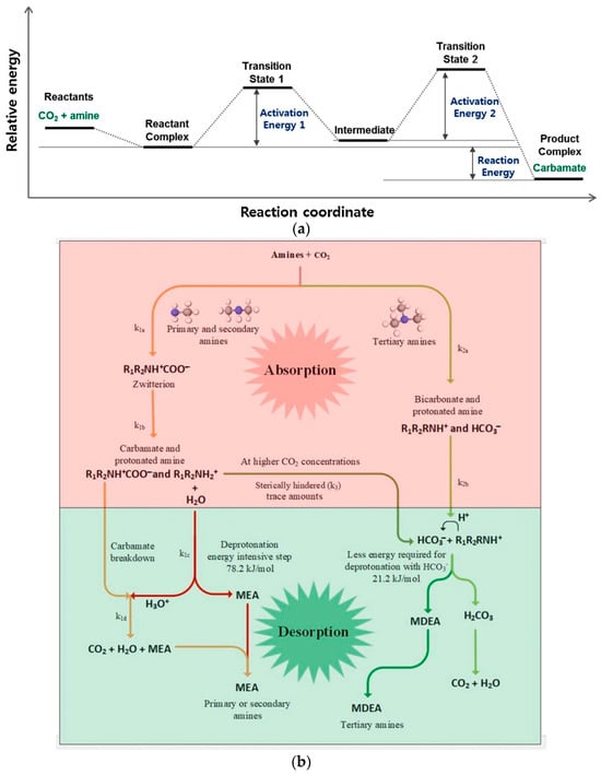 - Kim, S.; Shi, H.; Lee, J.Y. CO2 Absorption Mechanism in Amine Solvents and Enhancement of CO2 Capture Capability in Blended Amine Solvent. Int. J. Greenh. Gas. Control 2016, 45, 181–188. [Google Scholar] [CrossRef]