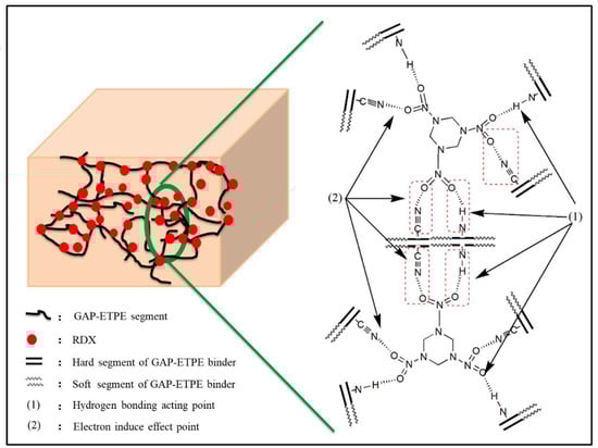- The static mechanical test showed that GAP–ETPE/RDX composite did not display a de-wetting phenomenon because of the “induce effect” between –CN and –NO2 group, which led to a stronger interfacial adhesion force for the GAP–ETPE/RDX model propellant.