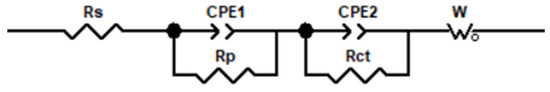 Equivalent circuit model for matching with the electrochemical impedance data.