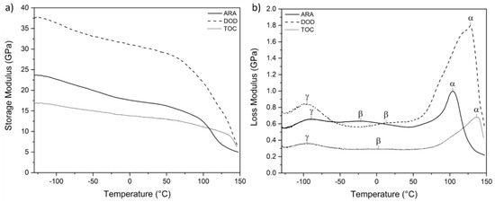 | Sample | E′ at 25 °C (GPa) | E″ at 25 °C (GPa) | Tan δ at 25 °C | Tan δ Peak Height | E′ at 25 °C (GPa) |