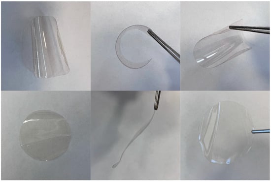 Mechanical tests of the films were carried out on an I1140M-5-01-1 universal tensile testing machine (Tochpribor-KB, Ivanovo, Russia) using the ASTM D638 method. Dog-bone specimens (ASTM standard D1708-96 [46], 22 × 5 mm) were prepared by punching the films using a stainless steel die. The data are presented as the mean ± standard deviation (SD) of mean and as the median with interquartile range. One-way ANOVA followed by Dunnett’s test was performed using the Sigma Stat 3.5 (Systat Software, San José, CA, USA). The p values meeting the condition p < 0.05 were considered statistically significant.