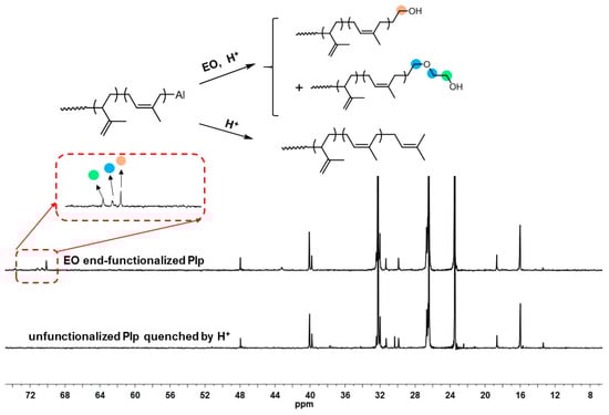 13C NMR of EO end-functionalized PIp and unfunctionalized PIp.