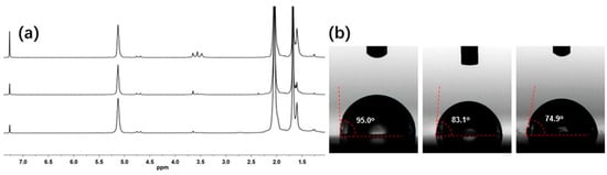 1H NMR (a) and WCA values (b) of EO end-functionalized PIp products.