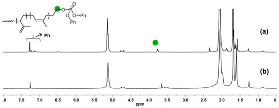 1H NMR spectra of DPCP-modified PIp (a) and pristine PEO-functionalized PIp (b).