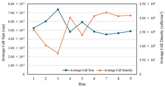 Table 3 summarizes the cell sizes and densities for each measurement position, and Figure 4 illustrates the average cell size and density in each experimental run.