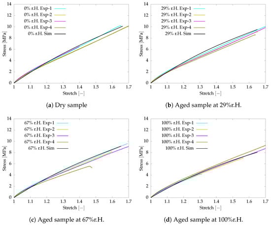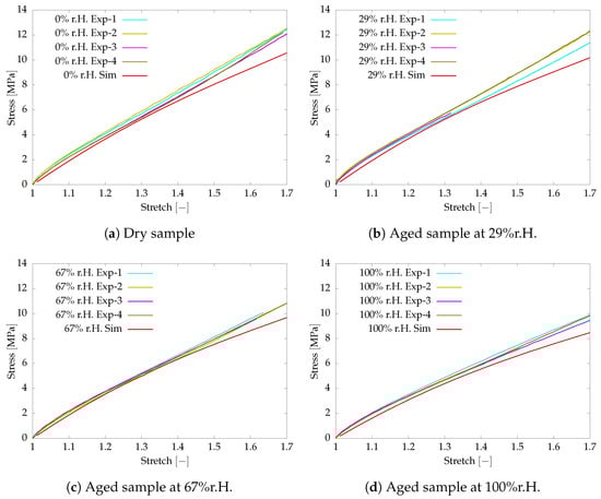 The aged samples are prepared for different humidity conditions. The aged samples are investigated for tensile behaviour under strain rate at an isothermal condition of C. The experimental and simulation data are compared in Figure 2. The deviation between the simulation and test results is agreeably small to use in the further investigation of damage behaviour.