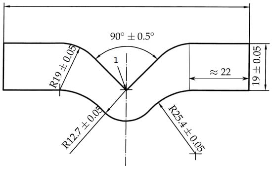 Geometry of the angle sample based on DIN ISO 34-1: all dimensions are in millimetres.