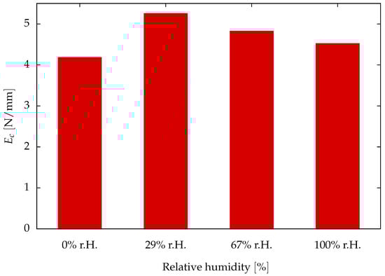 The critical energy release rate of the aged samples shown in Figure 8 indicates that the adhesive material becomes ductile under the influence of moisture, thus leading to an increase in the critical energy release rate. The critical energy release rate is minimum for the dry sample and reaches a maximum for the sample saturated at relative humidity.
