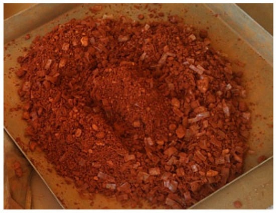 The materials needed for preparing lateritized plastic include lateritic soil, shredded PET (from plastic bottles), water, a mixing container, a trowel for mixing, and a sieve. The following procedures should be followed in order to prepare a mixture of lateritic soil and shredded PET (polyethylene terephthalate): Choose a suitable supply of lateritic soil and dig it up. Sieve the soil to remove any rocks, debris, or vegetation. The PET material should be chopped or shredded into tiny pieces, ideally 1 to 5 mm in size. Decide on the proportion of lateritic soil to shredded PET (2%, 4%, 6%, 8%, and 10% of shredded PET was used for this investigation). In the mixing container, mix the shredded PET with lateritic soil as shown in Figure 2. Prior to mixing, make sure the PET shreds are dry and clean. As you mix, progressively add additional materials after starting with less. Water should be added gradually to the mixture while stirring. The recommended range for moisture content is 10–15%. Mixing should be performed until the mixture is homogenous and the materials are well blended.