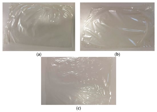 Chitosan (CH)-based films with (a) 20% GLY (w/w of CH); (b) 30% GLY (w/w of CH); (c) 50% GLY (w/w of CH).