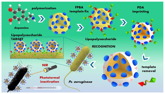 - Zhang, Q.; Zhang, M.; Huang, Z.; Sun, Y.; Ye, L. Molecularly Imprinted Polymers for Targeting Lipopolysaccharides and Photothermal Inactivation of Pseudomonas aeruginosa. ACS Appl. Polym. Mater. 2023, 5, 3055–3064. [Google Scholar] [CrossRef]