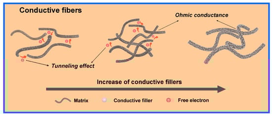Schematic illustration of the conductive mechanism of conductive fibers.