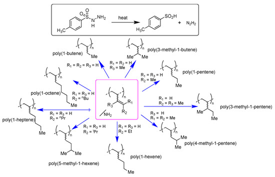 - Mango, L.A.; Lenz, R.W. Hydrogenation of unsaturated polymers with diimide. Makromol. Chem. 1973, 163, 13. [Google Scholar] [CrossRef]