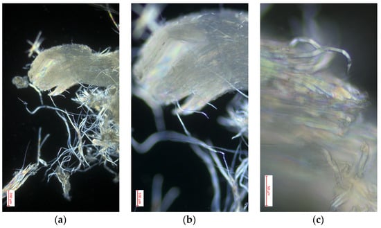 For the characterization of the extracted cellulose, advanced analytical techniques have been employed. Fourier transform infrared spectroscopy (FTIR) allows precise identification of the characteristic functional groups of cellulose and the assessment of its purity [,,]. Complementarily, polarized light optical microscopy offers a detailed view of the morphology and crystallinity of the cellulose fibers, providing crucial information about the structure and properties of the obtained material [,,].