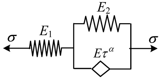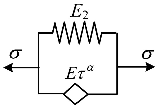 The fractional differential Maxwell model, which is composed of a spring-pot and spring in series, is shown in Figure 2. The stress–strain relationship of this model is given by Equation (12).
