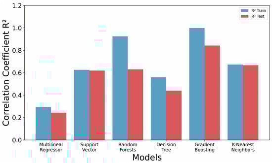 Without prejudice to the statistics discussed above, other important performance parameters that should also be considered for the selection of good predictive models are the mean-root-quadratic error (RMSE) and Mean Absolute Error (MAE) [52]. In our study, when comparing the GB_A and GB_B models, the highest R2 values for training and test sets were consistently correlated with lower RMSE and MAE values. Thus, model GB_A highlights the ability of the model to make better predictions that are quite close to real values. Furthermore, the data were assessed in a cross-validation set (CV) for Models A and B, resulting in a similar MAECV of 0.2605 and 0.2725, respectively. This indicates that the models’ predictions during cross-validation have an average absolute error of around 0.27 units compared to the actual values.