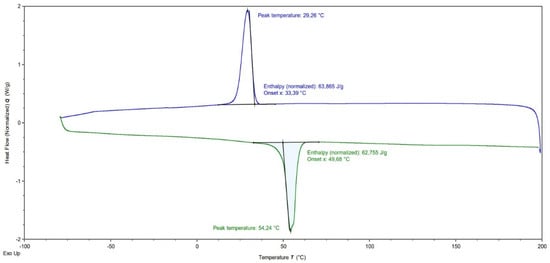 No significant differences were noticed for the thermal behavior of the obtained samples. To illustrate this, Figure 3 shows a double cooling/heating cycle from 250 °C to −80 °C and from −80 °C to 250 °C (second ramp).