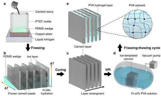 - Chen, Y.; Zheng, Y.; Zhou, Y.; Zhang, W.; Li, W.; She, W.; Liu, J.; Miao, C. Multi-layered cement-hydrogel composite with high toughness, low thermal conductivity, and self-healing capability. Nat. Commun. 2023, 14, 3438. [Google Scholar] [CrossRef]