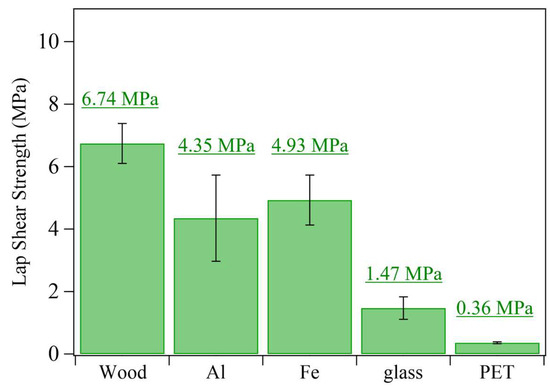 Lap shear strengths of P15 on different adherents (tensile speed = 10 mm min−1; n = 3).