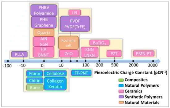Piezoelectric polymers can be divided into natural and synthetic. Figure 4 shows selected piezoelectric materials along with the piezoelectric coefficient (d33).