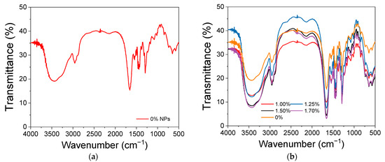 3.1.2. Infrared Spectroscopy (FTIR) of the NPs and Individual Polymers