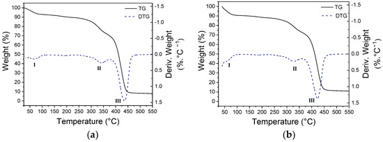 3.2.4. Thermal Analysis of the Polymer Nanocomposite Fibers