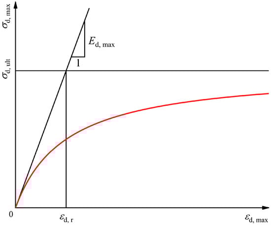 The shape of the backbone curve shown in Figure 3 is similar to the hyperbolic model. Hardin and Drnevich [49] showed that the backbone curve of soil under cyclic loading is of the hyperbolic type. Figure 5 shows the hyperbolic model of the backbone curve expressed as Equation (2):