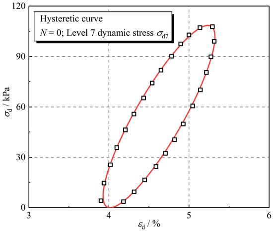 Hysteretic curve of level 7 dynamic stress for the sample without freeze–thaw cycles.