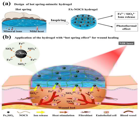 The scheme of the hot spring mimetic hydrogel for wound healing application [128].