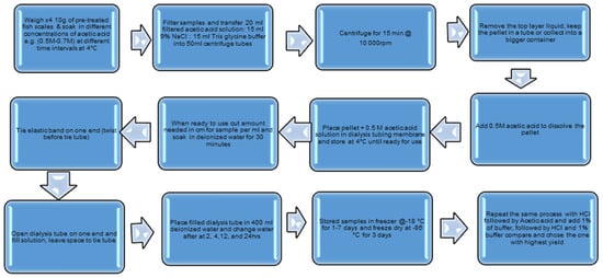 Fish scales were sourced from local markets within the Durban and Chatsworth areas. After collection, the fish scales were subjected to pre-treatment. The treatment entailed washing and disinfecting the fish scales. The collected fish scales were soaked and disinfected thoroughly with distilled water and 5 mL bleach and stored at −20 °C until use. Fish scales were then defrosted to room temperature and followed by rinsing with deionized water. The extraction of collagen and composite preparation will be carried out following different steps.