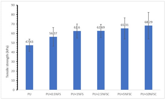 Tensile strength of reinforced PU foams with different concentrations of FSC and FSC.