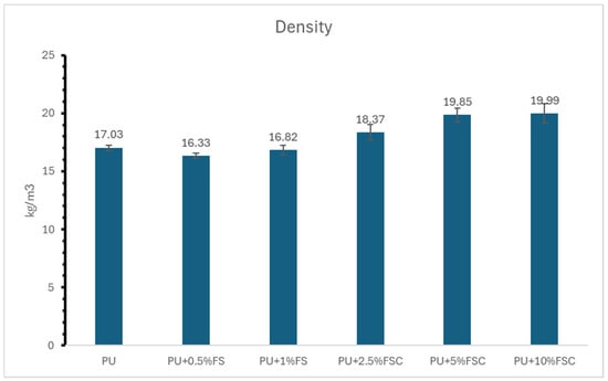 Density of reinforced PU foams with different concentrations of FSC and FSC.