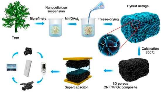 - Guo, X.; Zhang, Q.; Li, Q.; Yu, H.; Liu, Y. Composite aerogels of carbon nanocellulose fibers and mixed-valent manganese oxides as renewable supercapacitor electrodes. Polymers 2019, 11, 129. [Google Scholar] [CrossRef] [PubMed]
