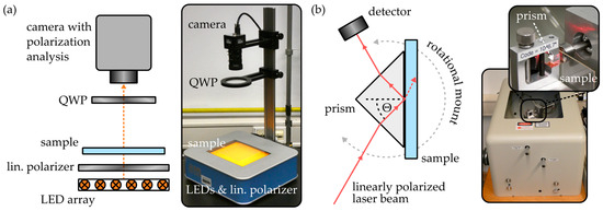 Working principle and images of the employed (a) real-time polarimeter and (b) prism coupler.