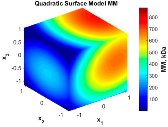 Quadratic surface representation for molar mass (MM) variation with coded variables.