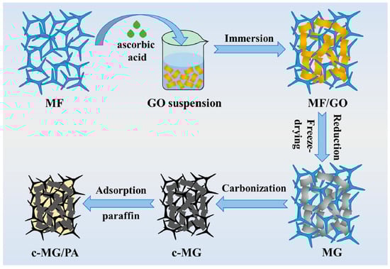 Scheme showing the fabrication of c-MG/PA []. Copyright 2023, Elsevier.