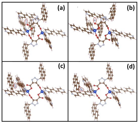 The possible adsorption (physisorption) sites for N2 (a–c) show initial and (b–d) final configurations.