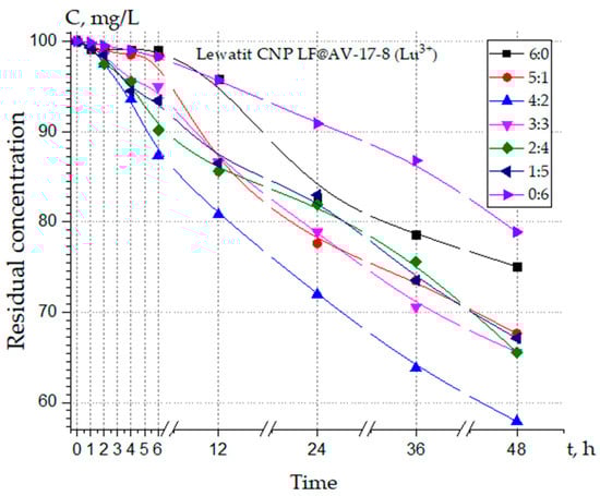 3.2. Sorption Characteristics of the Interpolymer System “Lewatit CNP LF@AV-17-8” (X:Y) in Relation to Lutetium Ions