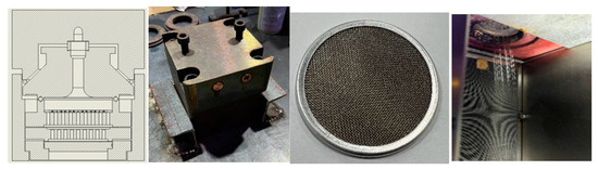 To ensure the even and continuous extrusion of the tow, it is necessary to ensure that the polymer melt is uniformly distributed at each micro-hole, enabling one to achieve a consistent pressure drop across all channels. Further, the design of the filter layer should be constructed so as to guarantee the filtration’s accuracy and ensure the good homogeneous effect of the melt. Moreover, the pressure applied through the filter layer should increase slowly in order to guarantee a relatively long continuous working time [32,33,34]. The empirical calculation formula for the pressure drop encountered in the filter screen is shown in Equation (9).