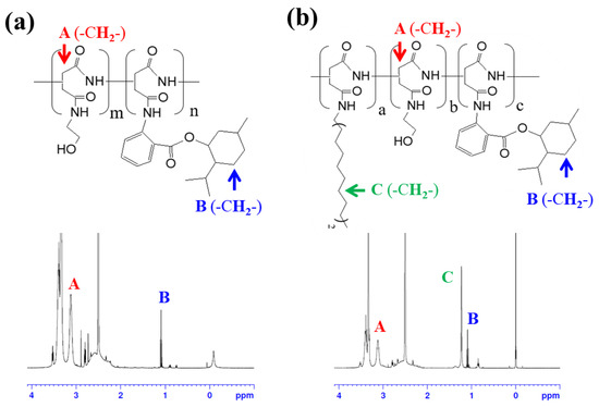 Molecular structure and 1H NMR spectra of (a) M-PHEA and (b) C18-M-PHEA, revealing the characteristic features of the synthesized polymers.