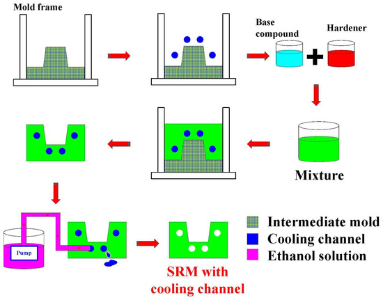 Detailed production flow chart of the silicone rubber mold with a cooling channel.