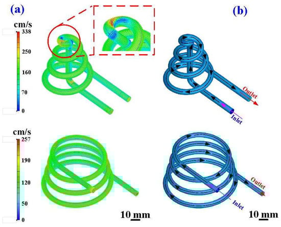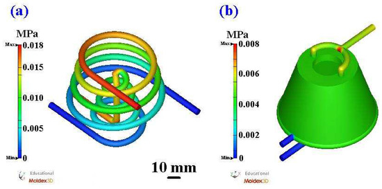 Coolant pressure diagram of silicone rubber mold with (a) CCC and (b) WCC.