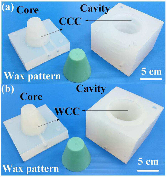 Silicone rubber mold with (a) CCC and (b) WCC for injection molding.