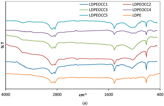 - Durmuş, A.; Woo, M.; Kaşgöz, A.; Macosko, C.W.; Tsapatsis, M. Intercalated linear low density polyethylene (LLDPE)/clay nanocomposites prepared with oxidized polyethylene as a new type compatibilizer: Structural; mechanical and barrier properties. Eur. Polym. J. 2007, 43, 3737–3749. [Google Scholar] [CrossRef]