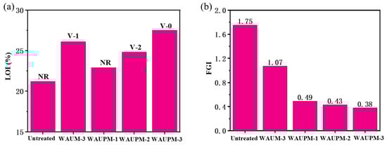 Limiting oxygen index and vertical burning grade (a) and fire growth index (FGI) (b) of PC/ABS samples coated with a waterborne flame-retardant coating.