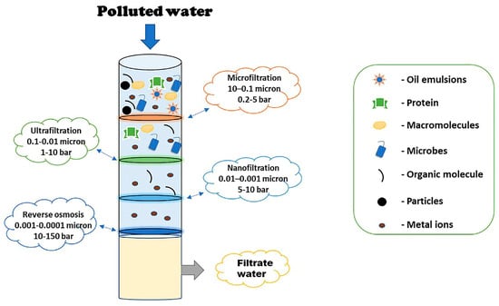 A schematic representing the capability of different membranes for treating wastewater [145].