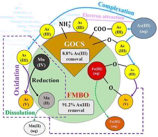 Schematic illustration of mechanism of removal of As (III) by using binary-doped Fe-Mn with chitosan-GO granular adsorbent [179].