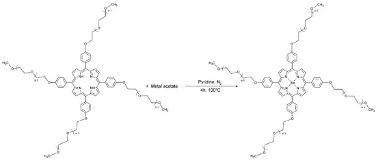 2.2. Synthesis of the 5,10,15,20-Tetrakis-p-(ω-methoxy-poly-oxyethylene phenyl) Metal-Porphyrins (Star3600_Me)
