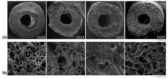 - Harley, B.A.; Hastings, A.Z.; Yannas, I.V.; Sannino, A. Fabricating Tubular Scaffolds with a Radial Pore Size Gradient by a Spinning Technique. Biomaterials 2006, 27, 866–874. [Google Scholar] [CrossRef]